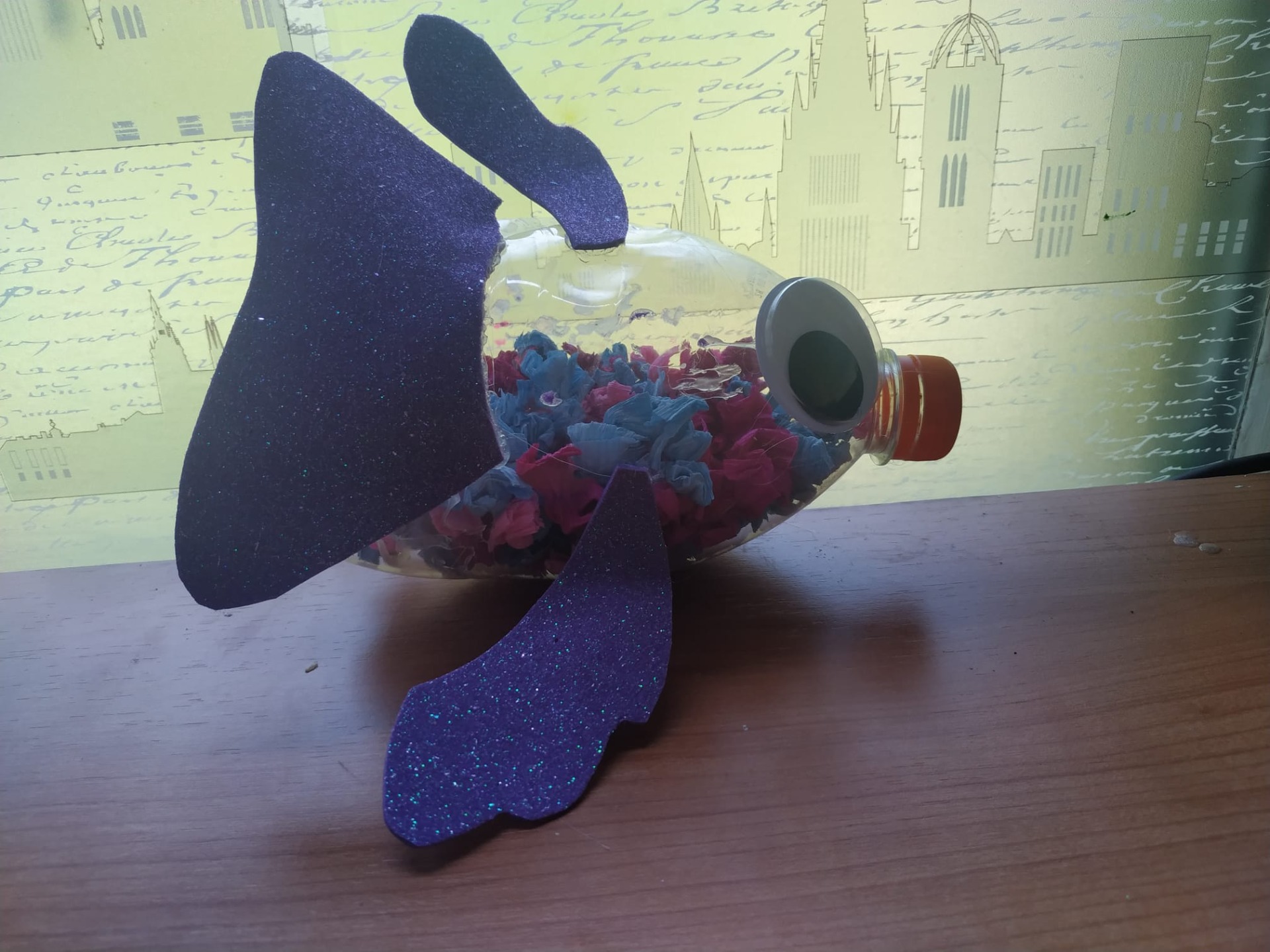 - ¡Y LISTO! Ya tenemos un pez con materiales reciclados.