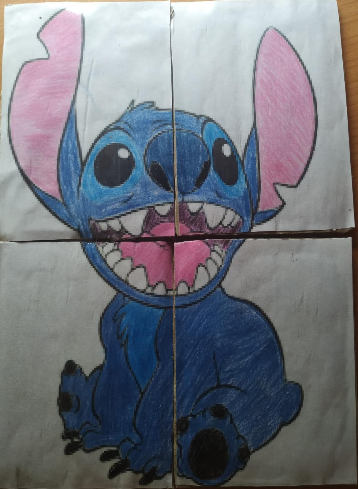- Primero pegamos el dibujo que hayamos escogido, sobre el cartón asegurándonos de que seque bien y no se hagan grumos antes de cortarlo.